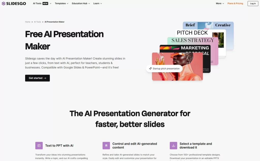 Using AI, Slidesgo creates complete slide decks according to your subject and style. It creates a presentation that you may modify and utilize immediately once you select a topic and a style (casual, creative, or professional). For last-