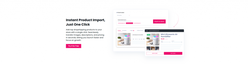 Found a product you like? Click once and it’s in your Shopify or WooCommerce store images, descriptions, pricing, and all Super Simple!