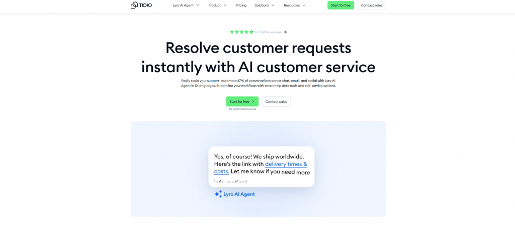 Live chat and AI-powered bots that can respond to inquiries qualify leads, and retrieve abandoned carts are combined by Tidio It doesn’t require coding and is simple to set up.