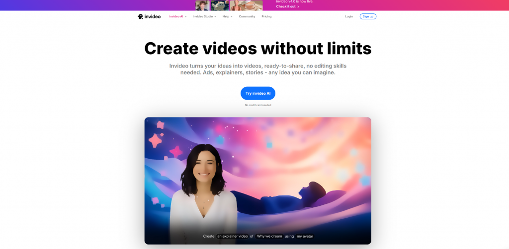 Invideo AI transforms the process of creating videos into a dialogue rather than a drudgery Neither a storyboard nor editing expertise are required Simply explain your concept and Invideo AI will take care of the screenplay, speech, graphics, and music.